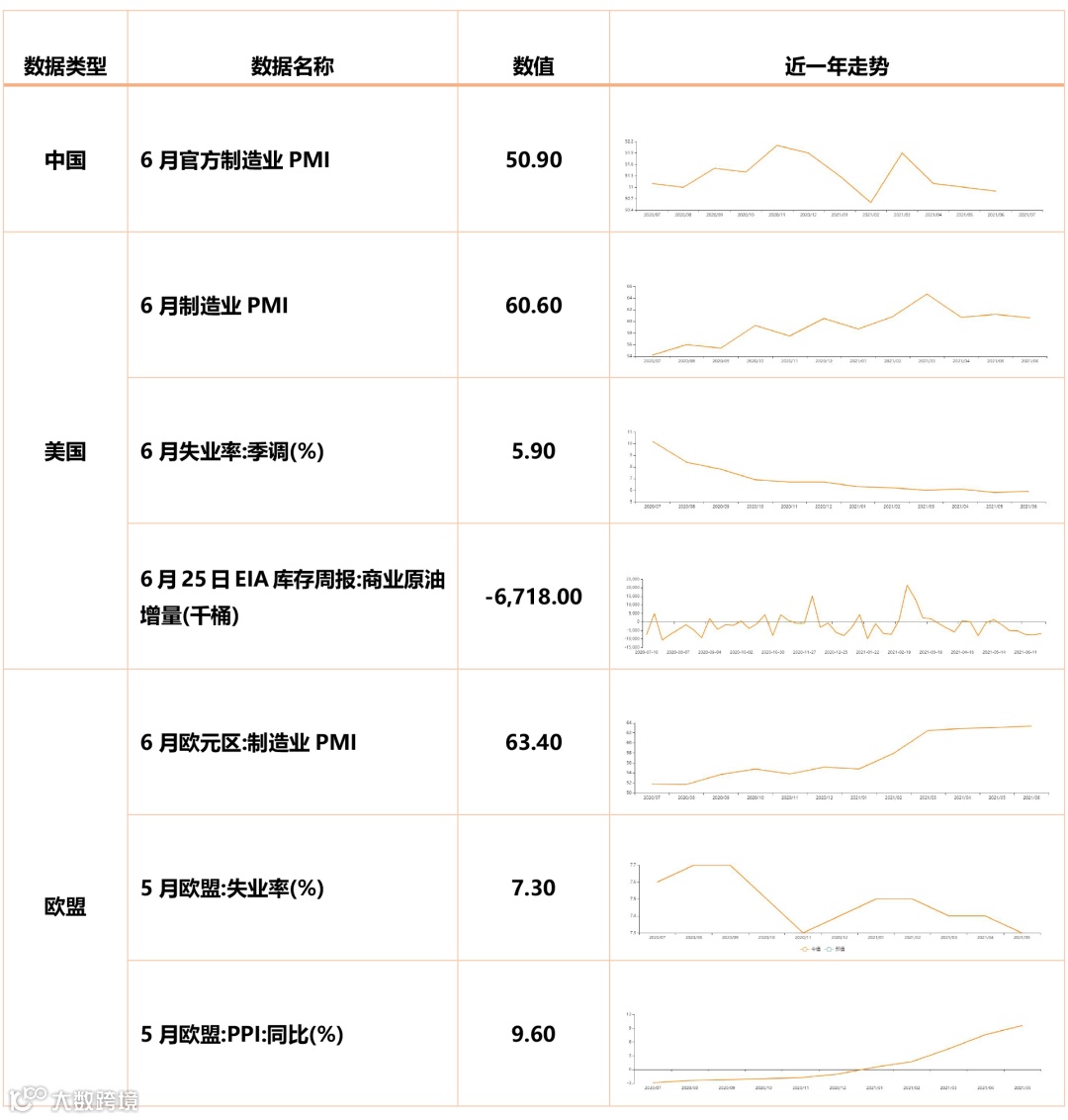 (4)美国劳工部数据显示,美国6月非农新增就业人数增长85.0万人,远超市场预期的72万人,5月份非农新增就业人数从55.9万人上修至58.3万人,4月份非农新增就业人数从27.8万人下修至26.9万人。失业率方面,美国6月失业率5.9%,略超市场预期5.6%,较前值的5.8%继续提高。分析师指出,劳动市场走强的迹象可能会增添美联储加快加息步伐的压力,并提振美元,从而打压其它主要货币。