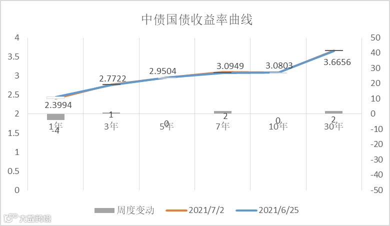 跨过半年时点,资金面重回宽松。上周隔夜资金利率小幅上升,而7天资金利率明显回落。R001加权收报1.65%,R007加权收报2.01%;GC001收报2.62%,GC007收报2.33%。