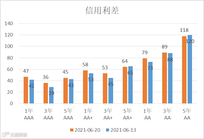 信用利差方面,中短久期信用利差继续走阔,其中3 年期各等级信用利差走阔达8bp。