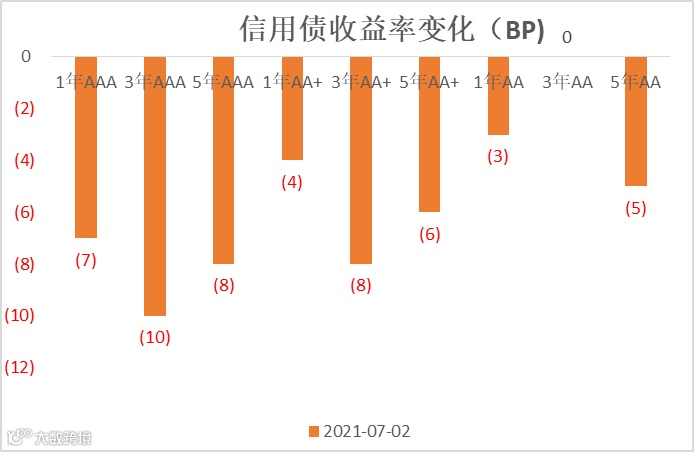 上周各等级各期限信用债收益率普遍下行,中高等级、短久期的收益率下行幅度更为明显。