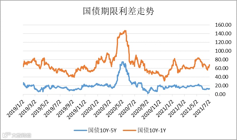 因短端利率下行明显,国债10Y-1Y期限利差走扩至68BP。