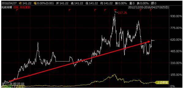 如果你在2012年平安夜(12月22日)花50块钱看《泰囧》时,觉得电影不错,就买了10万元的光线传媒(300251,25.9元/股),最新回报是70.3万元(2016.4.26)。
