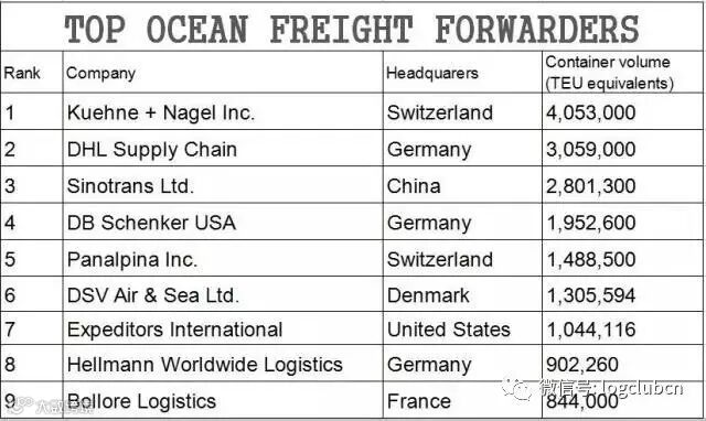 7最新全球货代50强名单出炉