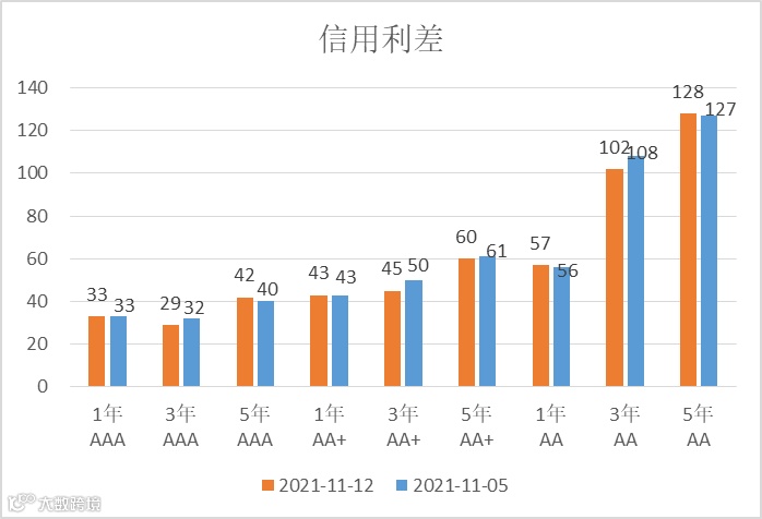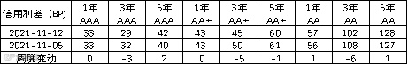 信用利差方面,各期限等级信用利差有所收敛。