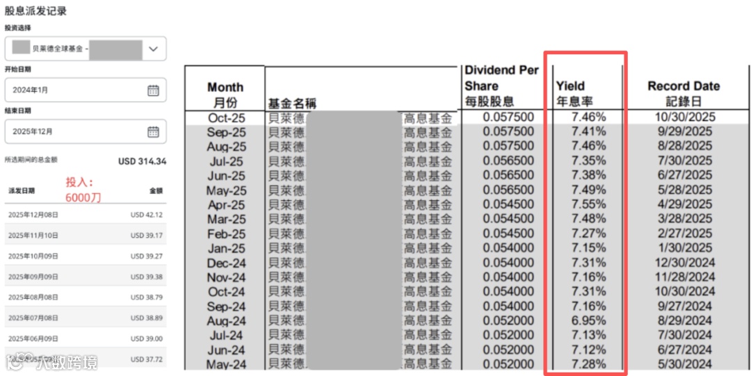 • 我这个账户实测:年化派息率稳定在 7%左右,且是美元计价。