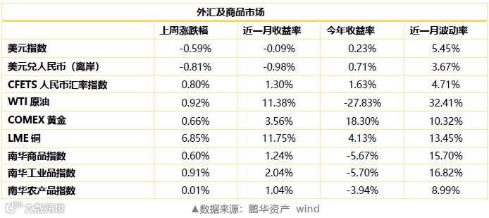 上周美债期限利差仍维持在历史低位水平;中美10年期国债利差持续扩张,上周收报238BP的历史高位水平。