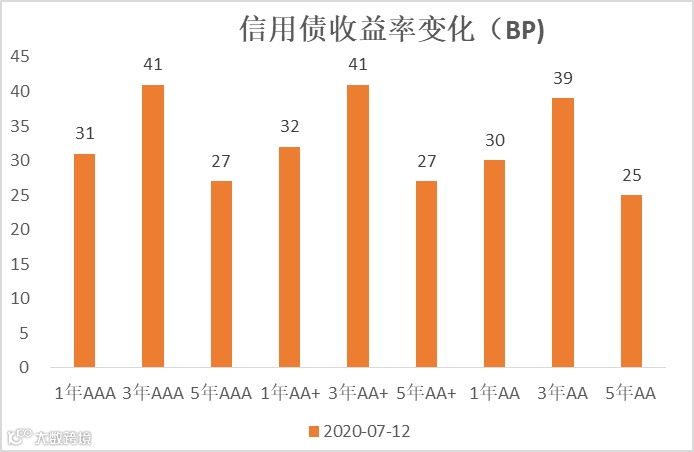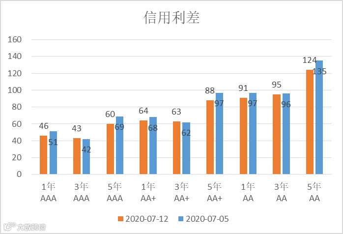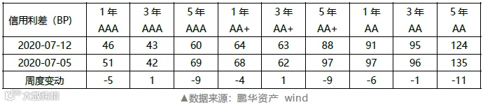 上周各期限、等级信用利差变动分化。