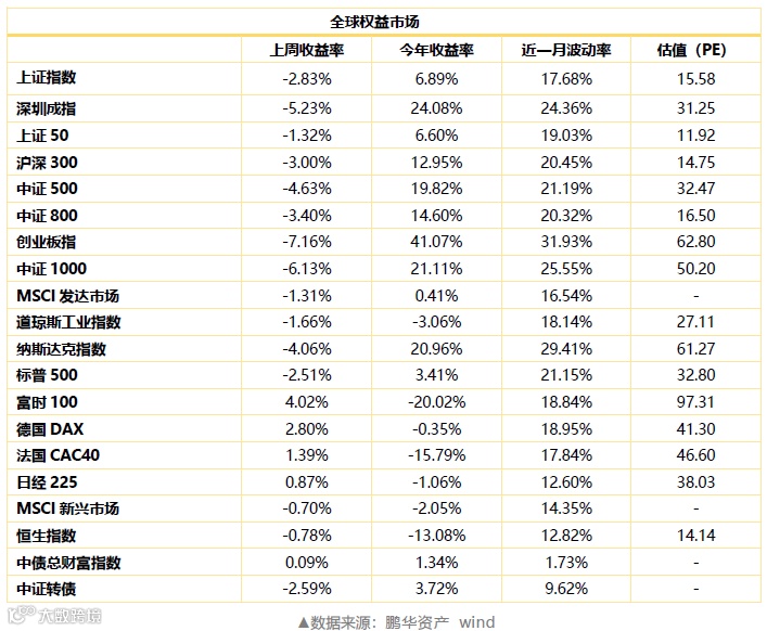 全球市场观察。全球主要经济体股市大部分下跌,美国纳斯达克、标普500业绩表现分别为-4.06%、-2.51%。欧洲主要股市大部分上涨,其中德国DAX、法国CAC40业绩分别为2.80%、1.39%,富时100涨4.02%。亚洲市场,日本日经225指数涨0.87%,香港恒生指数跌0.78%。