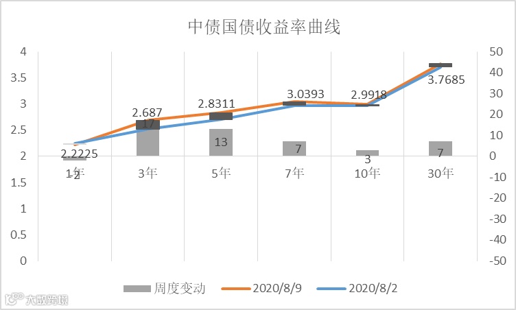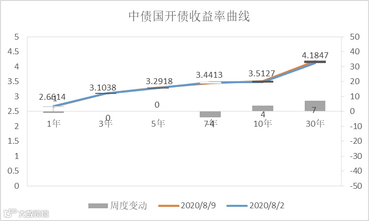 上周各期限国债收益率继续上行,其中3至5年中期国债收益率上行明显,分别上行17BP、13BP,10年期国债收益率上行至2.9918%。