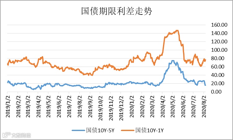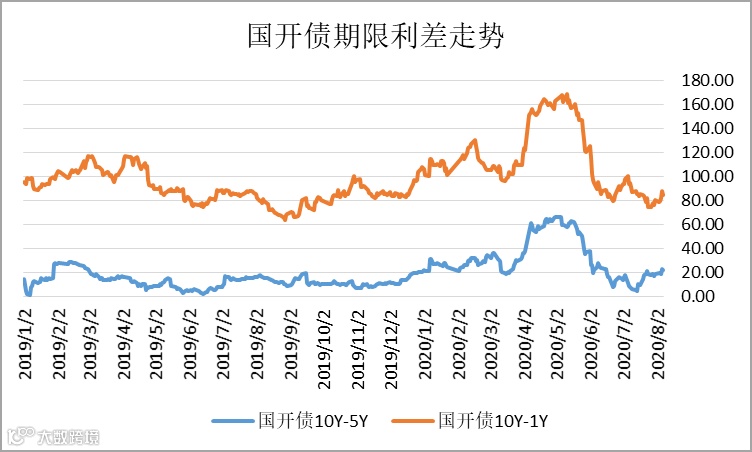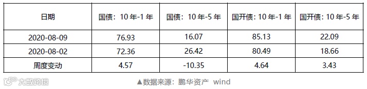 上周国债、国开债收益率期限10-1Y期利差小幅走阔,10-5Y期利差显著收紧;中长期国债进一步遭抛售。