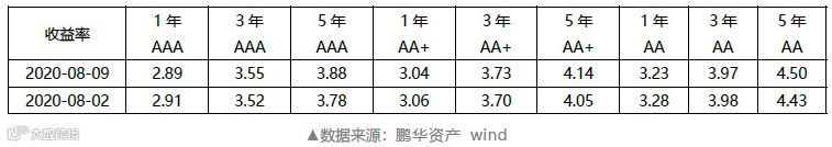 上周5Y期AAA、AA+、AA收益率补跌上行。