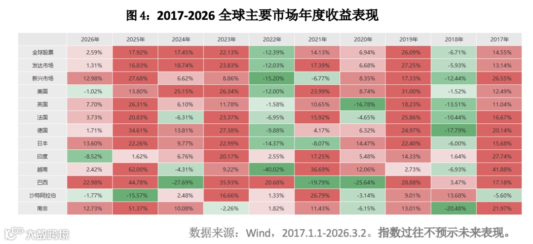对普通投资者而言,无需复杂的海外开户操作,通过公募QDII基金、全球宽基ETF即可轻松实现跨区域配置,建议整体遵循“立足主场、适度出海”的原则,较大仓位配置国内资产,牢牢把握国内经济复苏与政策红利带来的投资机会;较小仓位配置海外资产,其中发达市场可选择标普500、欧洲全市场指数相关工具,分散科技板块波动与货币汇率风险,新兴市场可重点关注亚太、印度相关基金,分享高增长市场的红利,同时搭配少量海外债券与黄金,进一步对冲汇率波动与地缘风险,海外仓位既是规避单一市场系统性下跌的“第二道防线”,也是捕捉全球市场轮动收益的重要抓手。