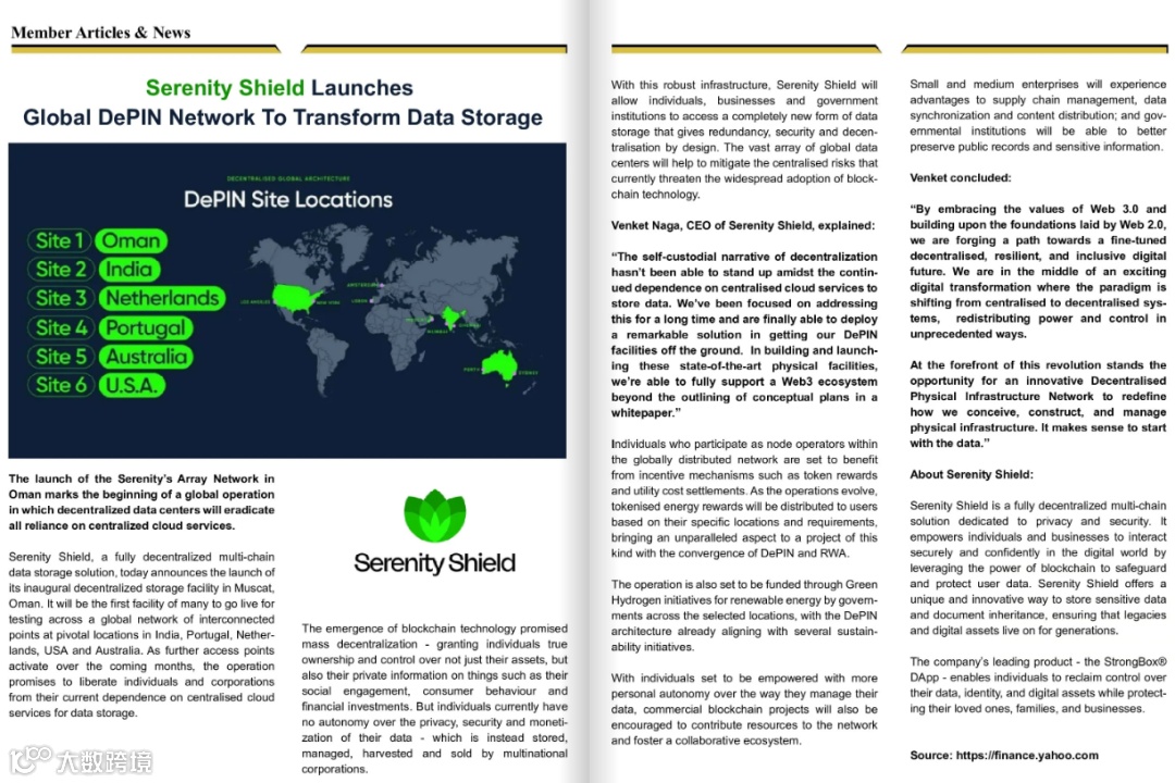 俱乐部会员公司Serenity Shield推出全球DePIN网络🌐