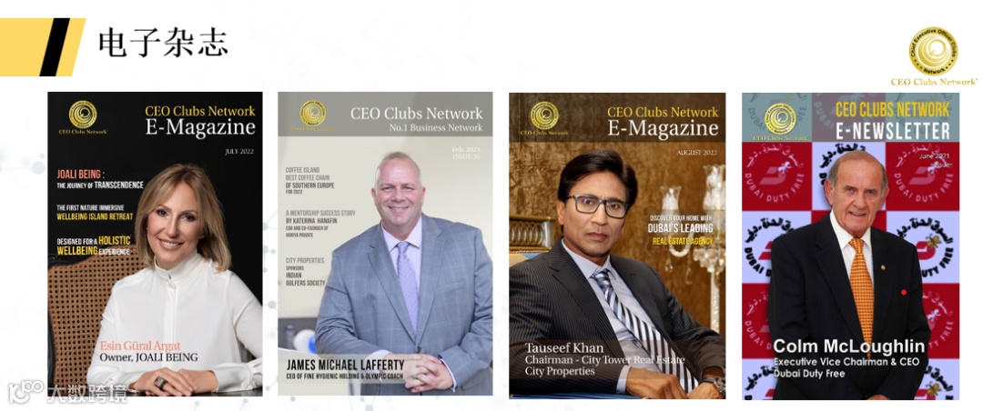 月刊和新闻频道专为国际总裁俱乐部的会员打造, 旨在提供可信赖的商业组织,分享成功故事、最新会员动向、商业合作机会和超值服务等实时俱乐部新闻。