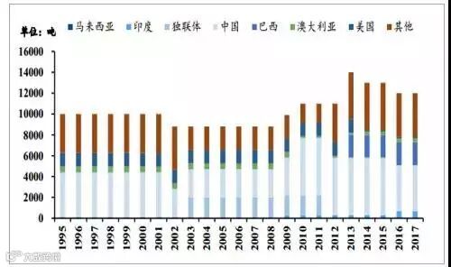 【图】全球稀土矿储量分布及年际变化(单位:吨)(图片来源:中国产业信息)