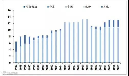 【图】全球历年稀土开采量(单位:万吨)(图片来源:中国产业信息)