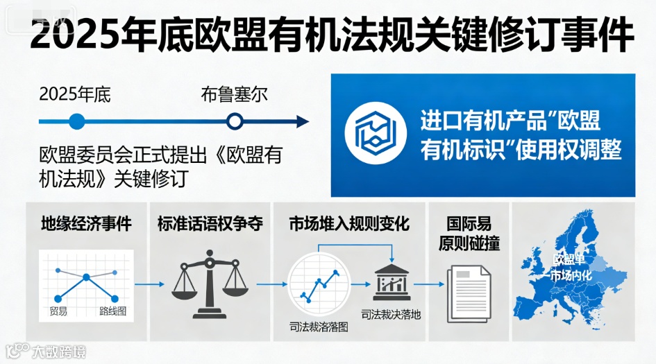 2025年底,一则来自布鲁塞尔的消息在全球有机农业领域激起千层浪。欧盟委员会正式提出对《欧盟有机法规》的关键修订,核心直指进口有机产品的“欧盟有机标识”使用权。这远非一次简单的标识调整,而是一场牵动全球贸易神经、关乎“标准话语权”与市场准入规则的地缘经济事件。它背后是司法裁决的落地、国际贸易原则的碰撞,以及一个愈加“内向”的欧盟单一市场。今天,我们就来深入剖析这场静水流深的变革。