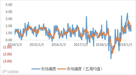从市场个股表现偏度来看,上周全市场偏度继续在高位,稍有回落。