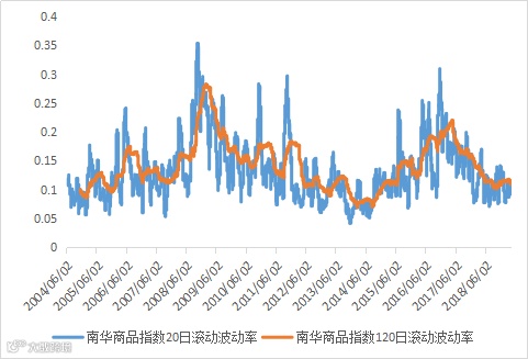 上周南华商品指数波动率小幅回升,总体来看仍处在低位。