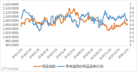商品策略。上周工业品分化震荡,农产品走弱,前期强势品种回调。商品市场具有趋势的品种比例自高位回落,市场波动率下降,不利于趋势跟踪策略。