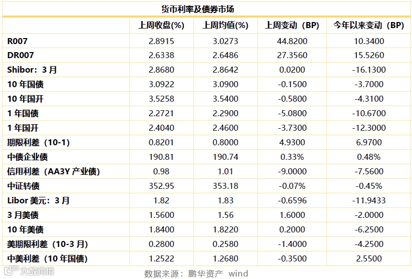 注:货币利率(R007、DR007、贴现利率、Shibor、Libor利率等)变动数据采用周均值,债券指数、债券收益率变动采用收盘价。
