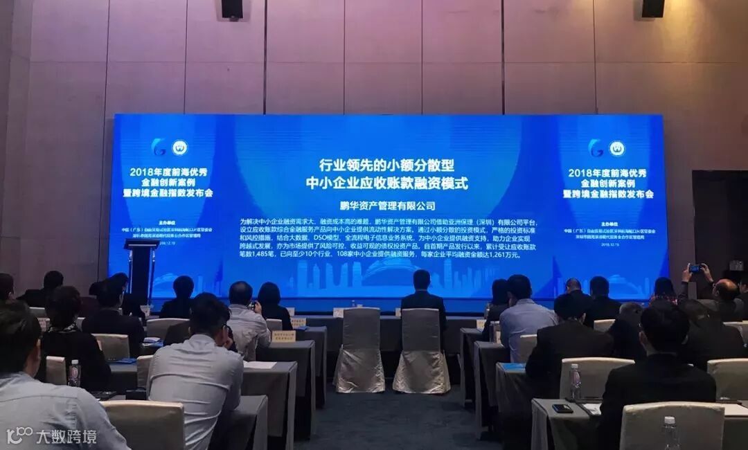 12月19日,由中国(广东)自由贸易试验区深圳前海蛇口片区管理委员会、深圳市前海深港现代服务业合作区管理局举办的“2018年度前海优秀金融创新案例暨跨境金融指数发布会”在深圳市前海万科企业公馆特区馆隆重举行,为入围案例申报单位颁发证书,本次案例评选活动按照公平、公正、公开的原则,经专家评审与研究,鹏华资产管理有限公司与亚洲保理(深圳)有限公司设立的“行业领先的小额分散型中小企业应收账款融资模式”被评为“2018年度前海优秀金融创新案例”。