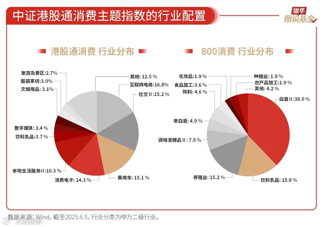 5、从行业分布看,中证港股通消费主题指数中互联网电商、社交、乘用车、消费电子等行业占比较高,与A股消费指数(以800消费为例)重叠较少,可与A股大消费行业形成互补。