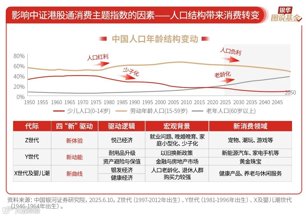 8、人口结构老龄化、家庭结构小型化催生情感消费的崛起,人们对旅游、娱乐、体育活动等“悦己消费”的买单意愿走强。各代际人群对“悦己”的追求不同,因此其偏好的新消费领域也各有侧重,覆盖潮玩、黄金、汽车、健康产品等多元板块。