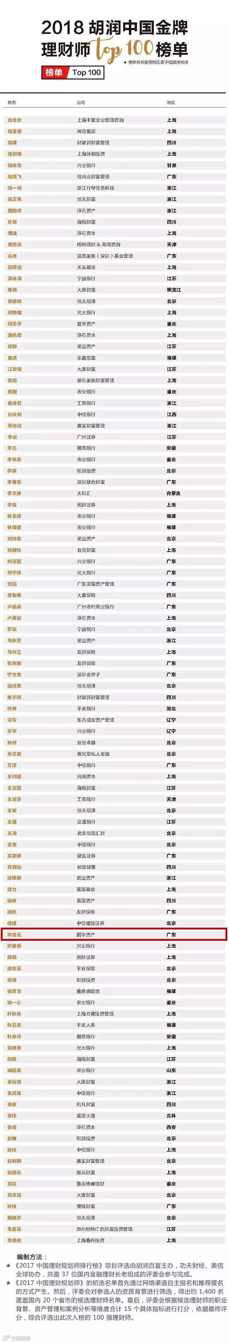 鹏华资产财富管理部总监许楚云女士凭借专业的金融背景、出色的服务理念及财富管理能力入选2018胡润中国金牌理财师TOP100榜单。