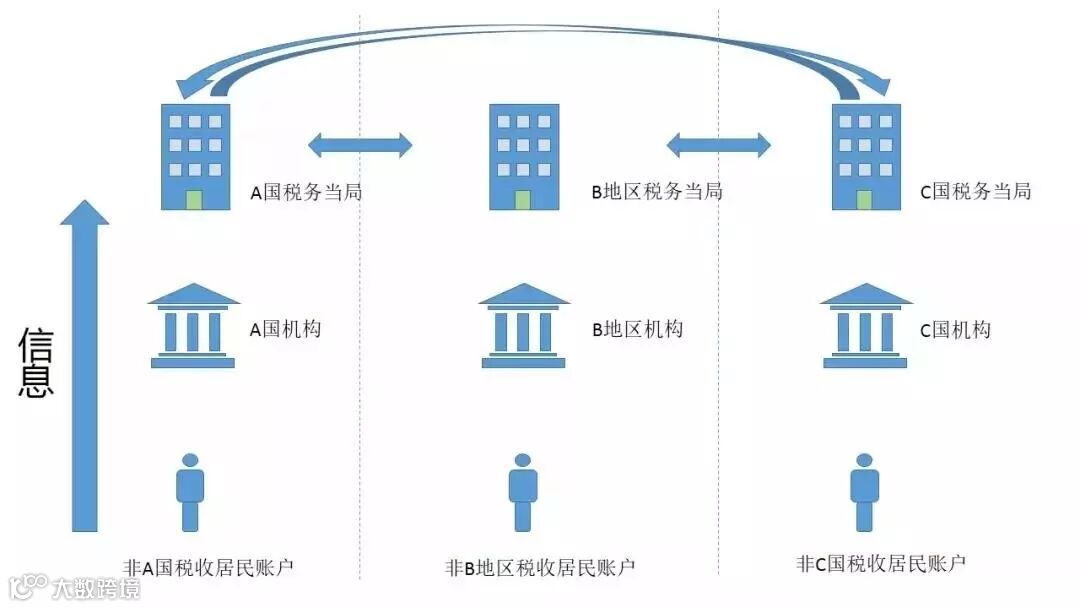 首先,一国的金融机构会识别另一国税收居民个人和企业在该机构开立的账户,之后机构向所在国主管部门报送信息,再由该国税务局与账户持有人的居民国税务局开展信息交换。