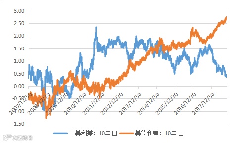 图24 10年中美利差及美德利差