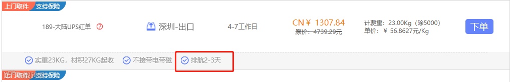 香港UPS:部分路线有排航情况,整体时效在4-7个工作日左右,渠道底部小标签有标明;