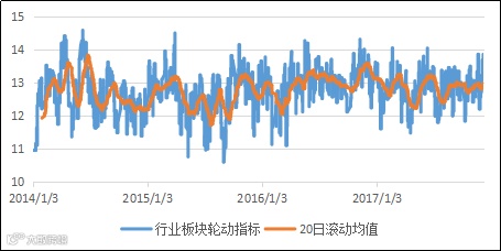 从轮动上来看,轮动指标相对稳定,市场板块轮动较弱。