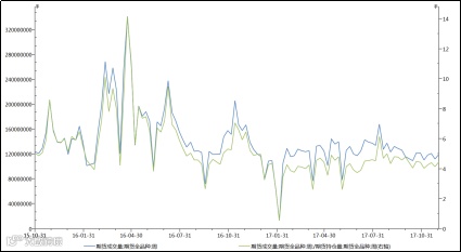 从全市场成交及持仓情况来看,期货市场成交量略有抬升,持仓量保持稳定,成交持仓比提高。