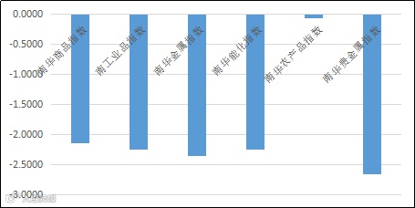 商品下跌。美元连续两周反弹,黄金续跌,国际原油上涨,铜等下跌。国内黑色品种逆转涨势,大幅下挫,带动国内商品大多下跌。南华商品指数上周下跌超过5%。焦煤、焦炭、铁矿石等大幅下跌,铜、铝、锌等金属亦下跌,工业品指数下跌超过2.25%。贵金属同步下跌。农产品强弱分明,指数微跌。上周商品期货成交量微升,成交持仓比上升,指数日内波动率大涨。