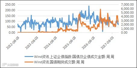 债券市场成交量有所降低,上证债券指数成交金额回落,国债期货成交额略有回升,持仓量继续下降。