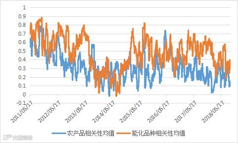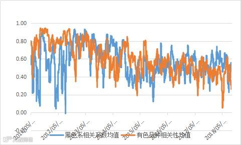 从品种相关性上来看,上周有色及农产品品种内部分化,相关性降低。