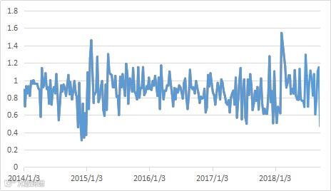 图4 沪深300/中证500 比值