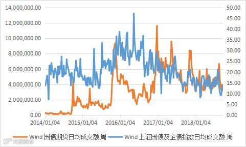 图23 国债期货成交额及上证债券成交额