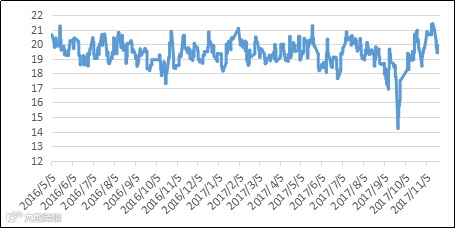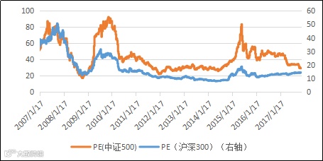 上周市场估值继续下降。中证500降至29以下,沪深300估值相对稳定。从历史来看,当前市场整体估值处在平均水平附近。中证500估值水平处在均值偏下位置。