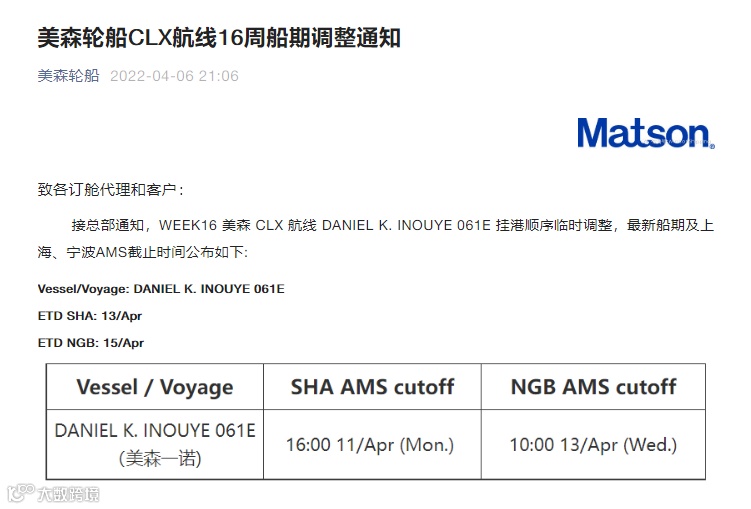 连一向稳定的美森也选择调整开船时间。
