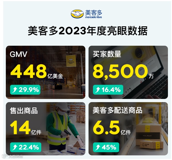 美客多2023年GMV达448亿美金,同比上升29.9%;