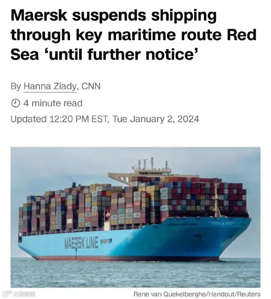 两天前,马士基“杭州号”在红海航行于2023年12月30日和12月31日两次遭到袭击,马士基随后宣布,暂停船舶穿越红海48小时。