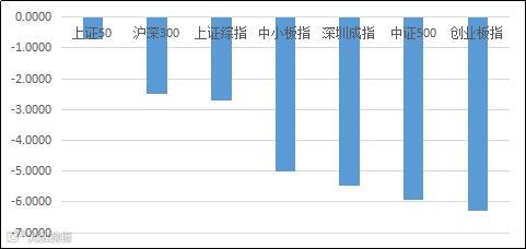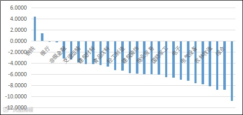 从行业板块来看,行业指数中唯有钢铁、采掘及银行上涨。TMT、农林牧渔、机械设备、军工、汽车等板块均重挫超过6%。