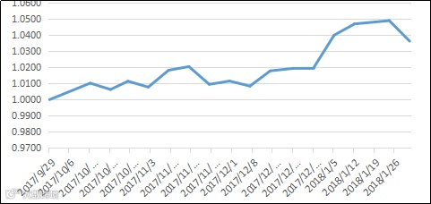 当下非标理财产品收益率较高,年化收益率超过7%,性价比突出,在组合中50%资产配置该类产品(鹏华固收系列产品)。权益类资产结构机会较大,下半年市场活跃,阿尔法及贝塔机会都存在,将30%资产配置中证500指数增强FOF,其余20%资产投向黄金ETF、现金类资产。本组合开始于2017年9月29日,截至2018年1月31日,组合单位净值为1.0363。