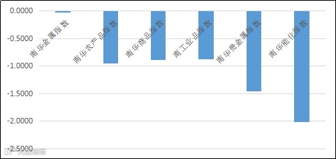 商品下跌。上周美元略有反弹,全球主要商品均出现回调,原油大跌接近3%,黄金在非农数据冲击下下挫1.34%,铜、镍等有色金属小幅下跌。国内商品回落,南华商品指数下跌0.89%。化工品下挫,天胶、PVC、PP等大幅下跌,黑色品种分化,铁矿石续跌,有色金属小幅震荡,工业品指数下跌0.87%。农产品转跌,油脂油料下挫,农产品指数下跌接近1%。贵金属指数下跌1.46%。商品期货市场成交量略降,指数波动率略有抬升。