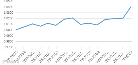 当下非标理财产品收益率较高,年化收益率超过7%,性价比突出,在组合中50%资产配置该类产品(鹏华固收系列产品)。权益类资产结构机会较大,下半年市场活跃,阿尔法及贝塔机会都存在,将30%资产配置中证500指数增强FOF,其余20%资产投向黄金ETF、现金类资产。本组合开始于2017年9月29日,截止2018年1月5日,组合单位净值为1.04。
