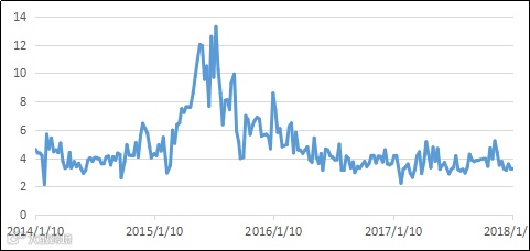 上周股指期货主力合约贴水略有加大。IC远季合约年化贴水率升至4.8%左右。