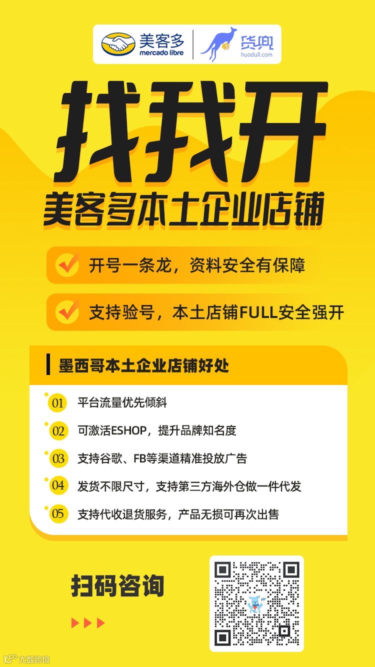 货兜可以在美客多开本土企业店铺了!
