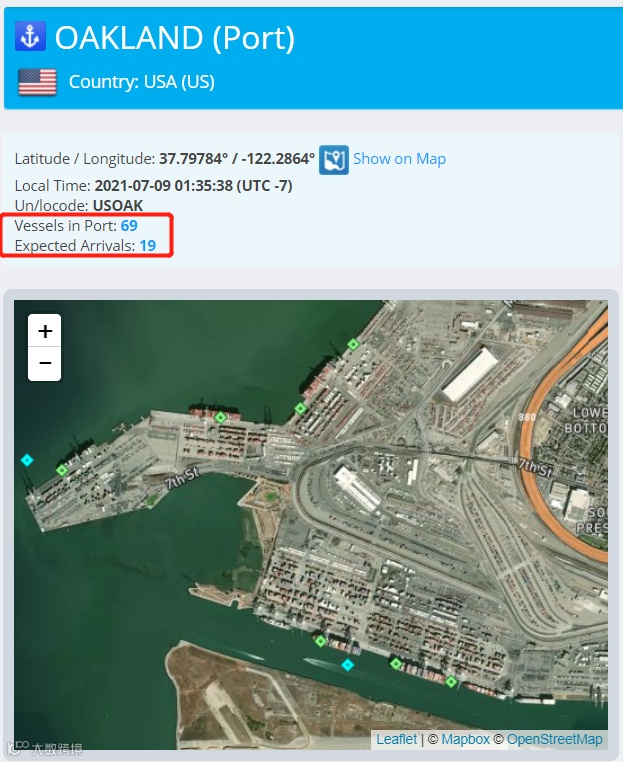 而奥克兰港作为洛杉矶港、长滩港的替代选择,也开始呈现拥堵。